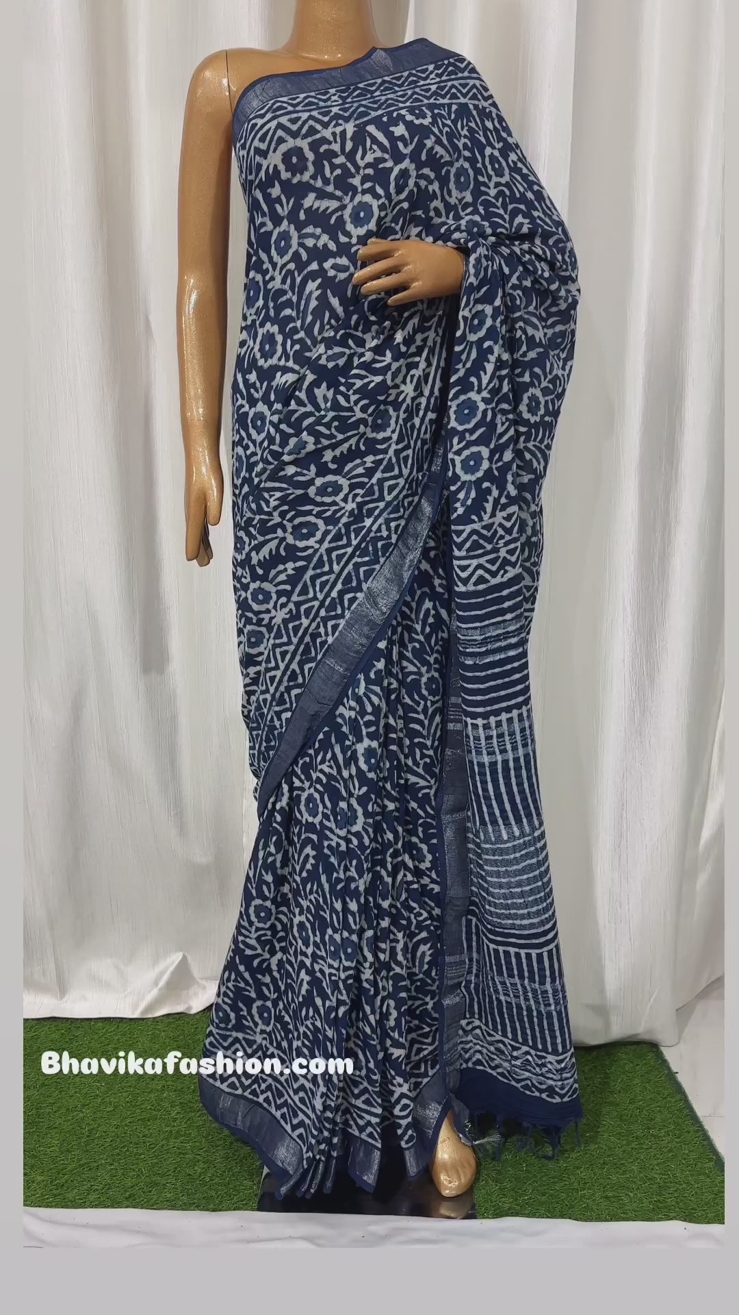Bagru Hand Block Printed Linen Cotton Saree: A blend of elegance and comfort, this saree features traditional Bagru prints on a soft linen-cotton fabric. Perfect for any occasion, it showcases the rich heritage of handcrafted designs.
