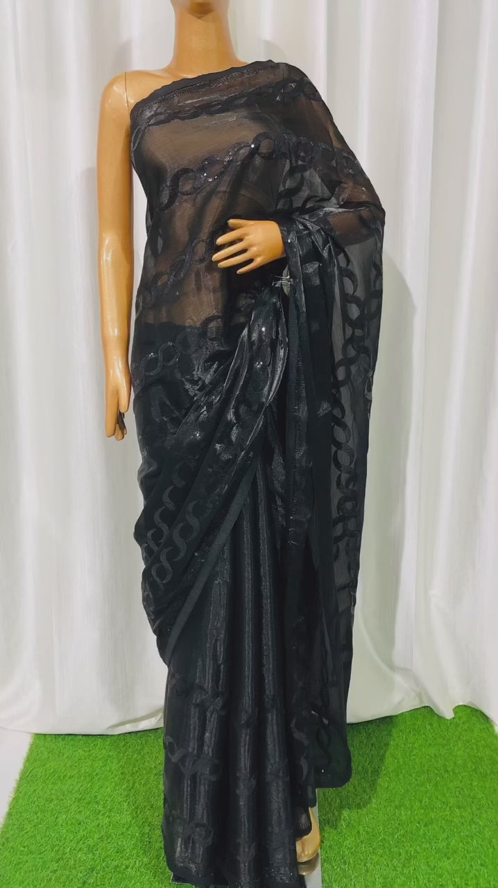 Unleash your inner diva with our Black- Jimmy Choo sequence work saree Saree - BFSLA59! This stunning piece features intricately designed sequin work and the timeless elegance of black color. Perfect for any occasion, it's sure to make you stand out and make a statement. Own it now and feel like a true fashion icon!