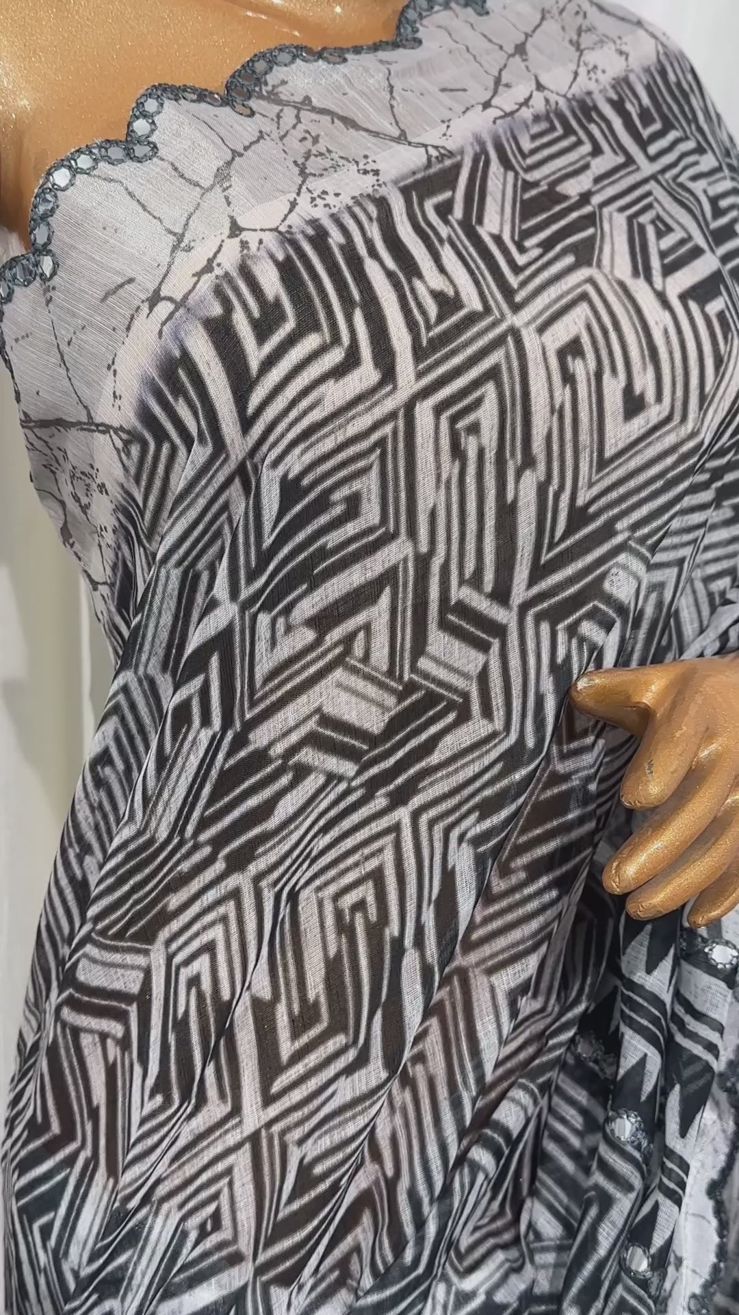 Introducing our Linen Cotton Plastic Mirror Work Saree, a luxurious blend of natural fibers with intricate plastic mirror work. Elevate your wardrobe with this exclusive saree that combines elegance and craftsmanship. Perfect for any special occasion, this saree will make you stand out in a crowd.